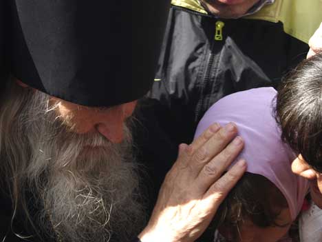 "Оптинский старец Илия, духовник Патриарха Кирилла, благословляет паломников "