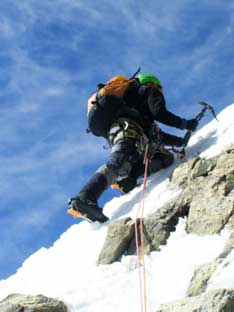 Акклиматизация в базовом лагере длилась 20 дней. Стартовали 19 октября, в 4.30 утра, с отметки 4800 м. Когда мы начали подъем, погода была хорошая, желание било ключом. Думали, что по мере приближения к вершине она будет «ложиться». Но это только казалось. На самом деле вершинная башня нависала над нами почти отвесно. То, что, казалось, можно было пройти пешком по снежным полкам, в действительности было 60-70-градусными склонами.
