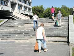В редакцию ВШ время от времени поступают звонки с просьбой обратить внимание городской власти на эту проблему. Ведь в библиотеку ходят дети, и в любой момент с кем-нибудь из них может случиться беда. Самые опасные, по мнению сумчан, два подхода к библиотеке: лестница со стороны ближайшей остановки и та, что ведет с ул.Соборной. О последней мы писали уже не раз. Ее, кстати, давно обещали отремонтировать, но все никак не соберутся. Мы решили напомнить о проблеме в надежде, что у нас получится узнать, кто же должен ремонтировать злосчастные ступеньки. В 2006 году решение упиралось в вопрос собственности. Городская власть категорически заявляла, что лестница не принадлежит городу: «Речь идет о коммунальной собственности областного совета. Ступеньки вокруг областной библиотеки сдавались в эксплуатацию как единый комплекс. А значит, облсовет должен побеспокоиться и решить эту проблему...»